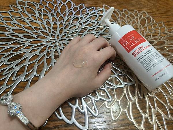 色澤透明晶透整體為PH5.5弱酸性配方設計的Dear Lauren高級修護沐浴&洗髮乳